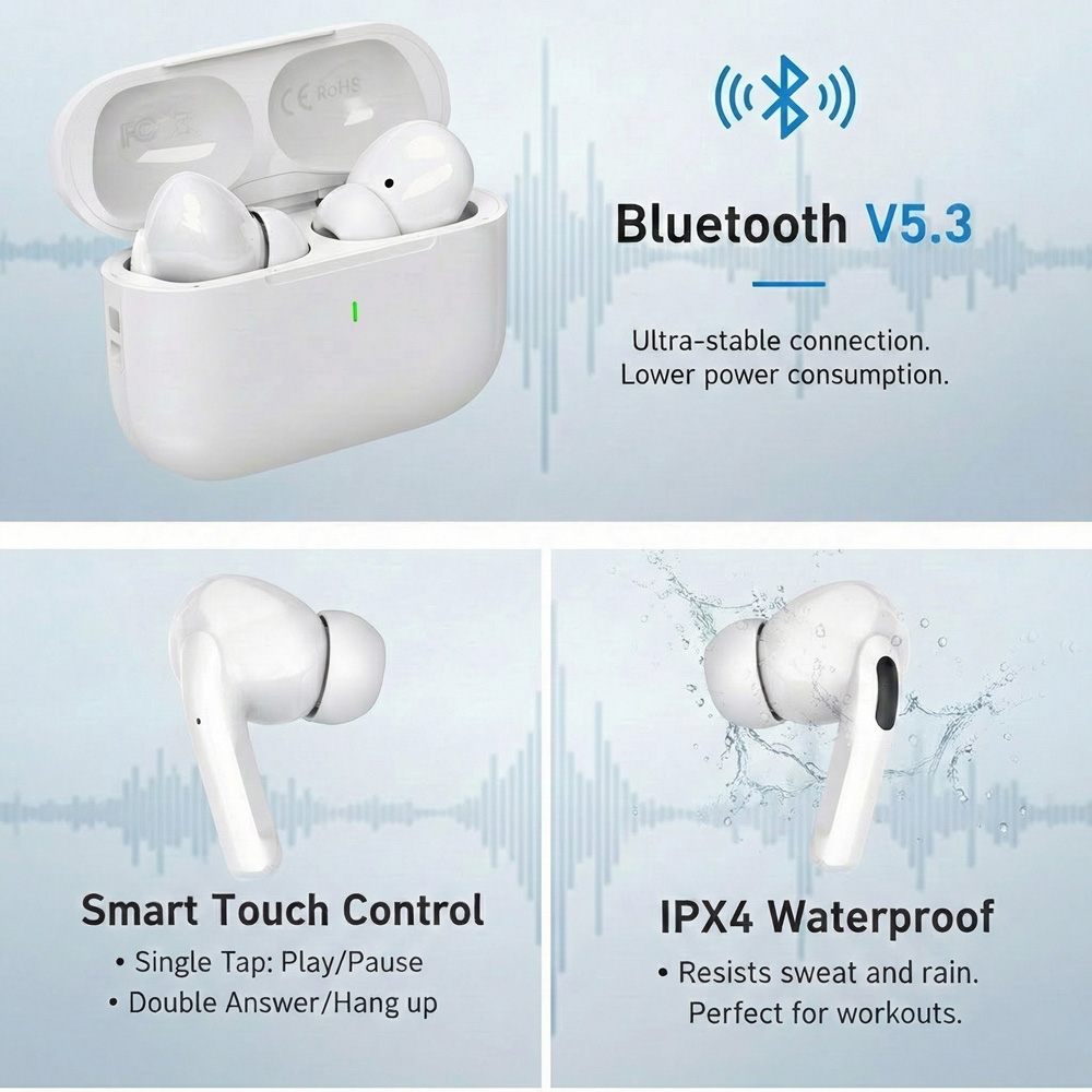 Kabellose Kopfhörer mit aktiver Geräuschunterdrückung und immersivem Sound, extrem niedrige Latenz, müheloses kabelloses Laden für Laufen im Fitnessstudio